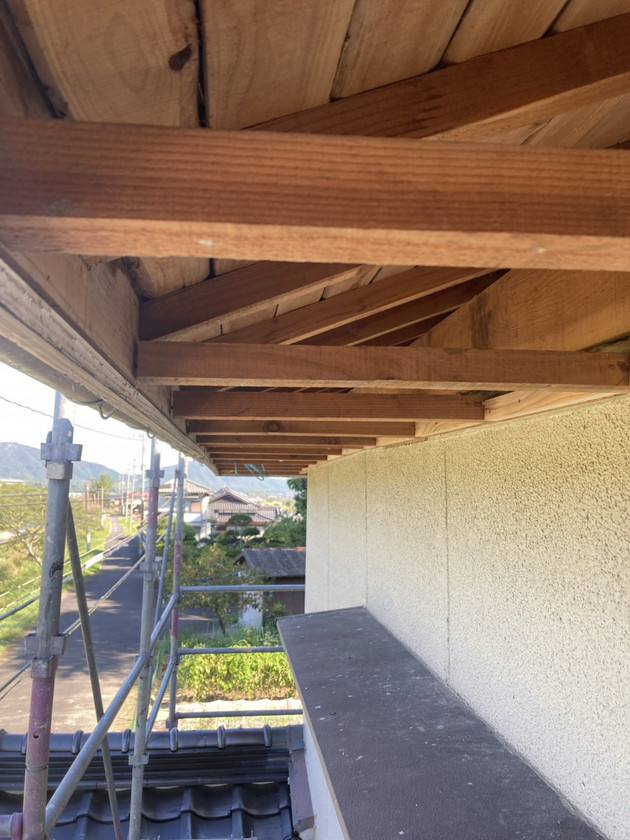 風水害で傷んだ庇(ひさし)を貼り替えたり、傷んだ軒天も解体して、この通り!